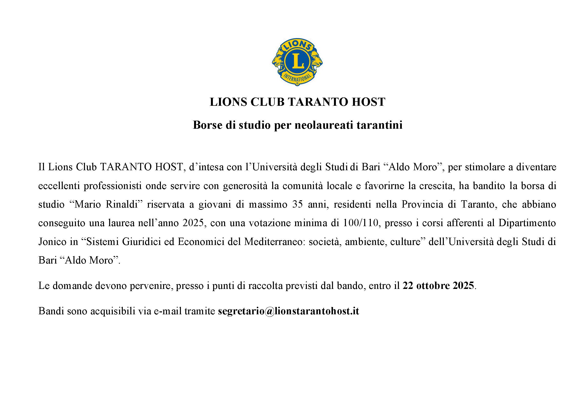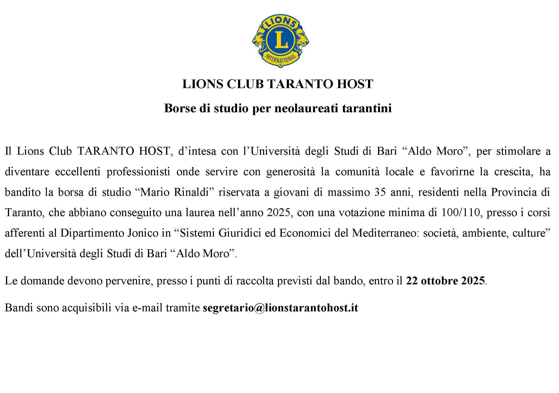 Le Foto del Club Lions Taranto Host (Anno Sociale: 2025/2026)...
